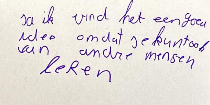 “ja ik vind het (de groep) een goed idee omdat je kunt ook van andere mensen leren.”