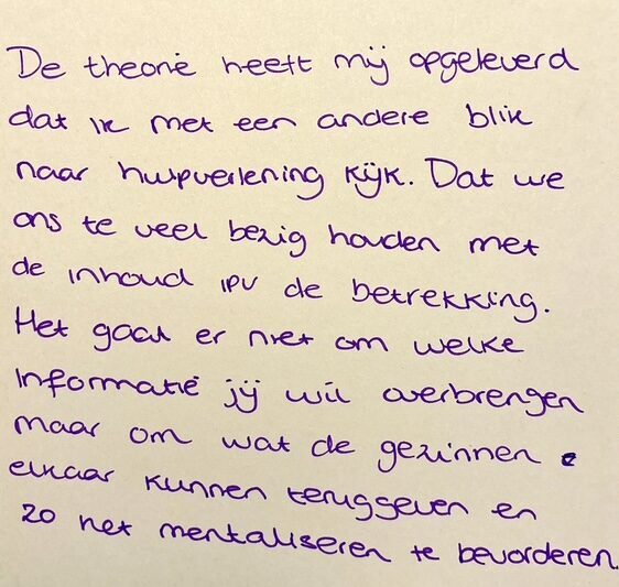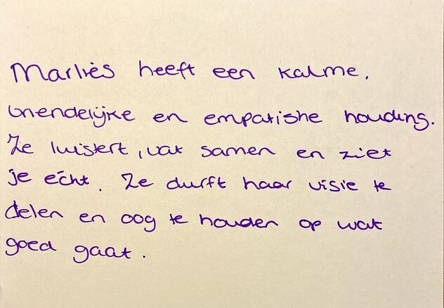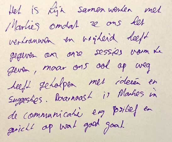 “De coaching on the job gaf me zelfvertrouwen. Ik voelde me ondersteund en kreeg de ruimte om te experimenteren met deze methodiek.”