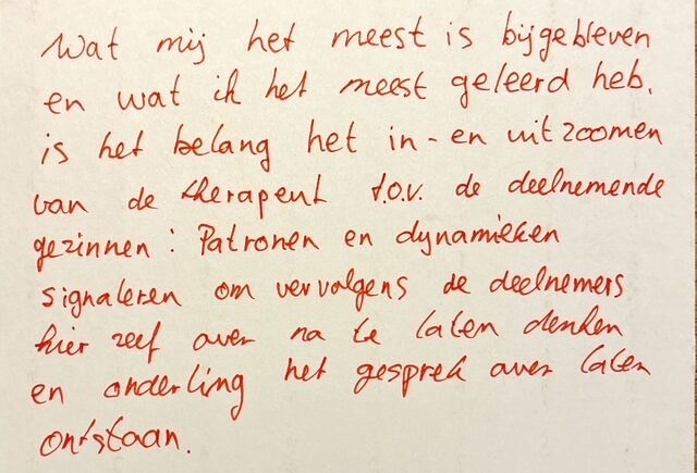 “Deze training heeft me de juiste tools gegeven om multi-familiegroepen op een krachtige manier te helpen begeleiden. Ik zie gezinnen écht groeien en dat is geweldig om mee te maken!”